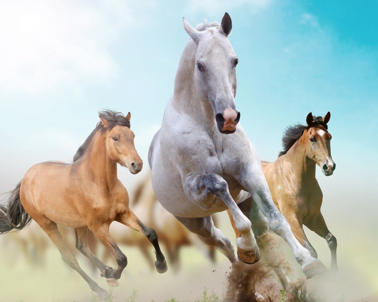 Uma manada de cavalos contra o céu