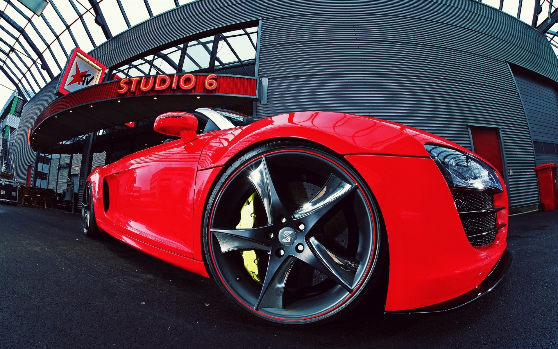 Carro vermelho com rodas íngremes