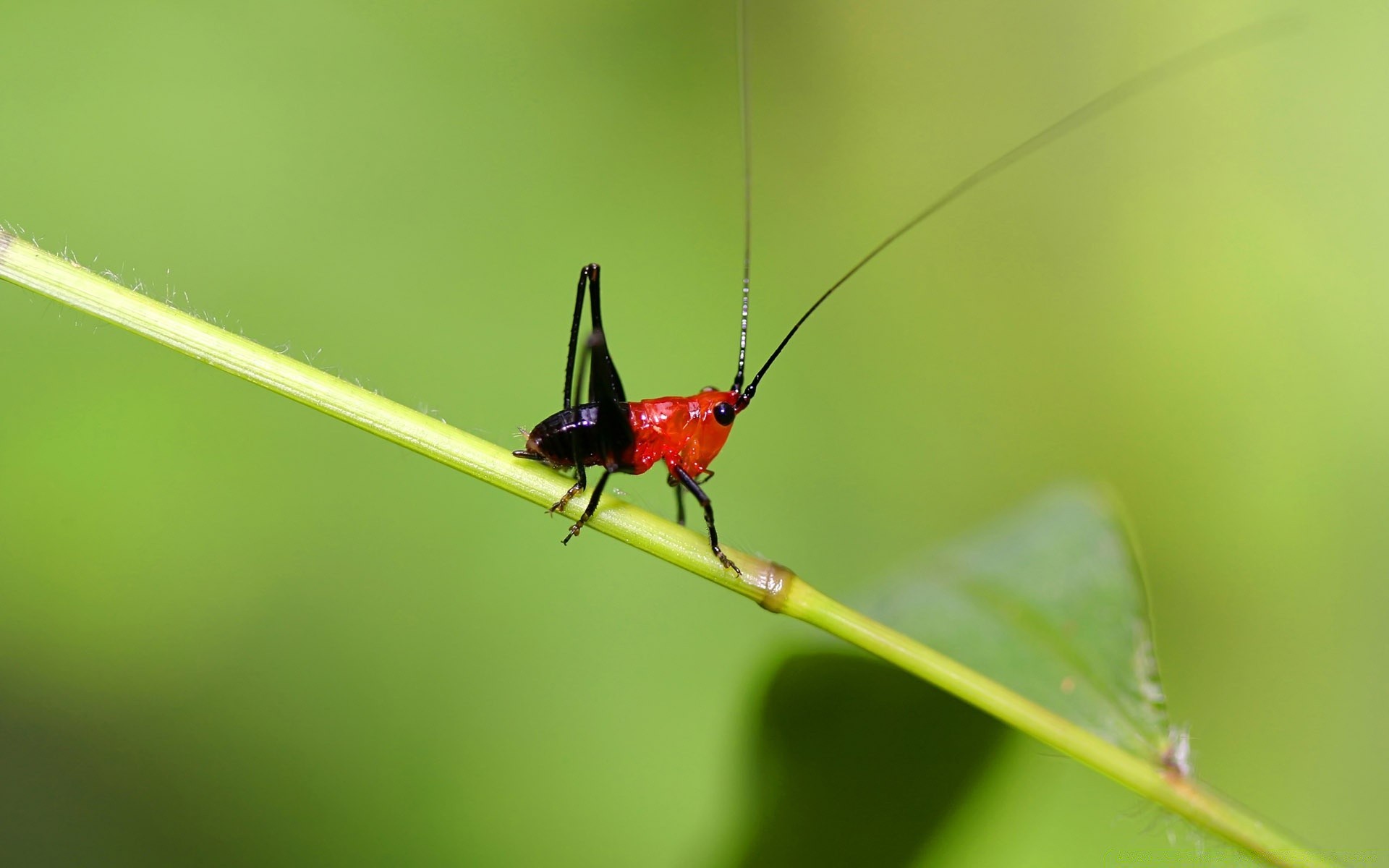 Vida selvagem. Inseto com bigode longo na folha de grama