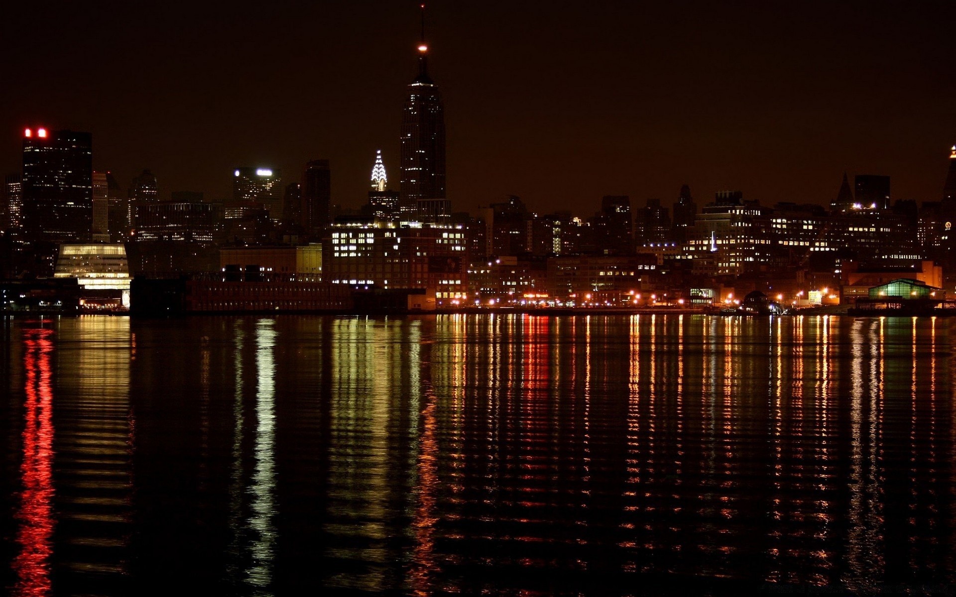 Edifício grande redondo em um único pilar contra o pano de fundo da cidade noturna