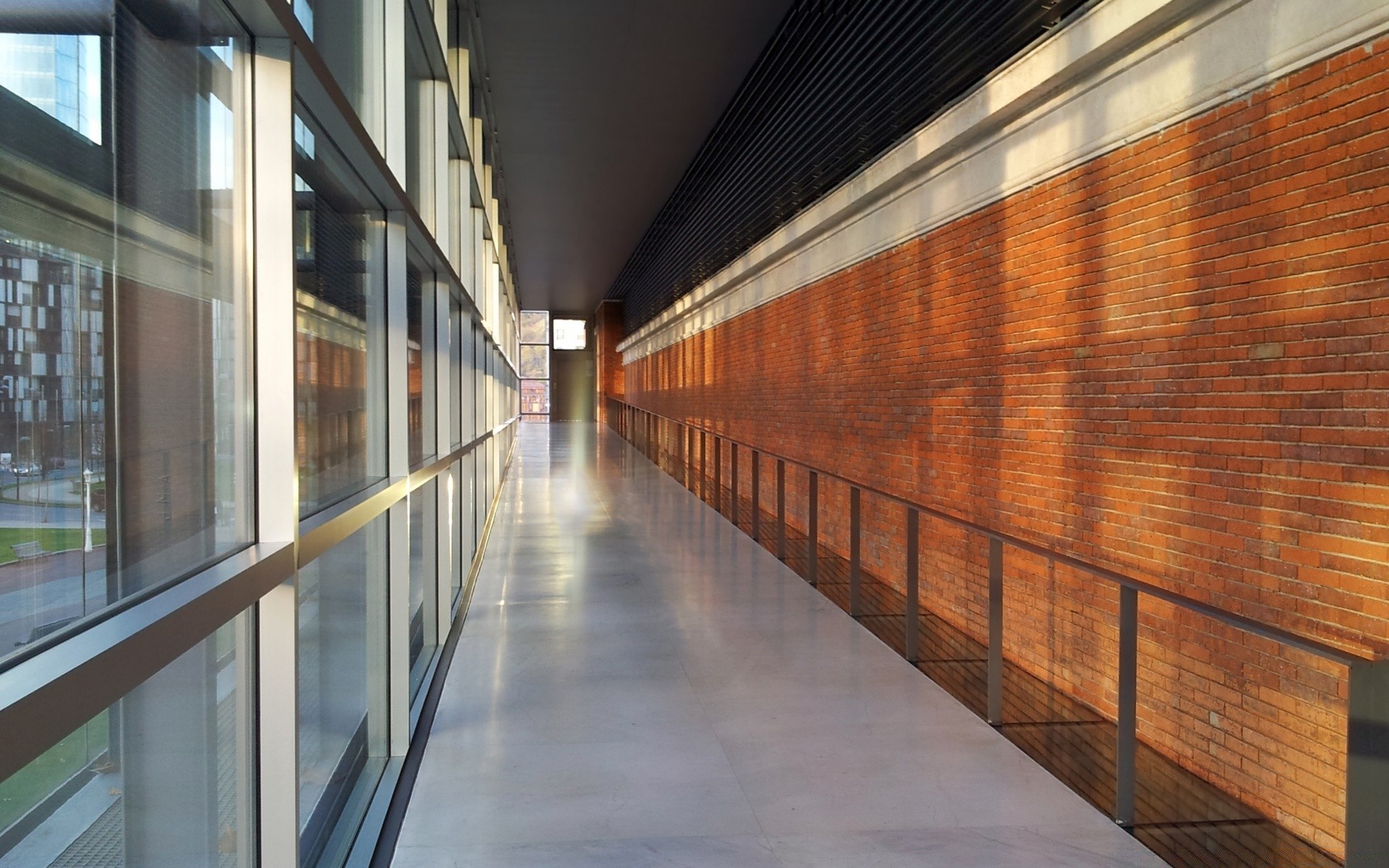 Um longo corredor vazio cheio de luz