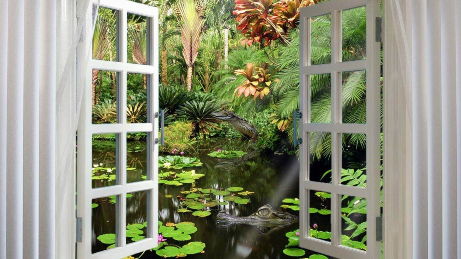 Vista da janela para a natureza tropical