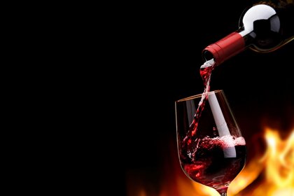 Vinho tinto fogo chama garrafa de vidro