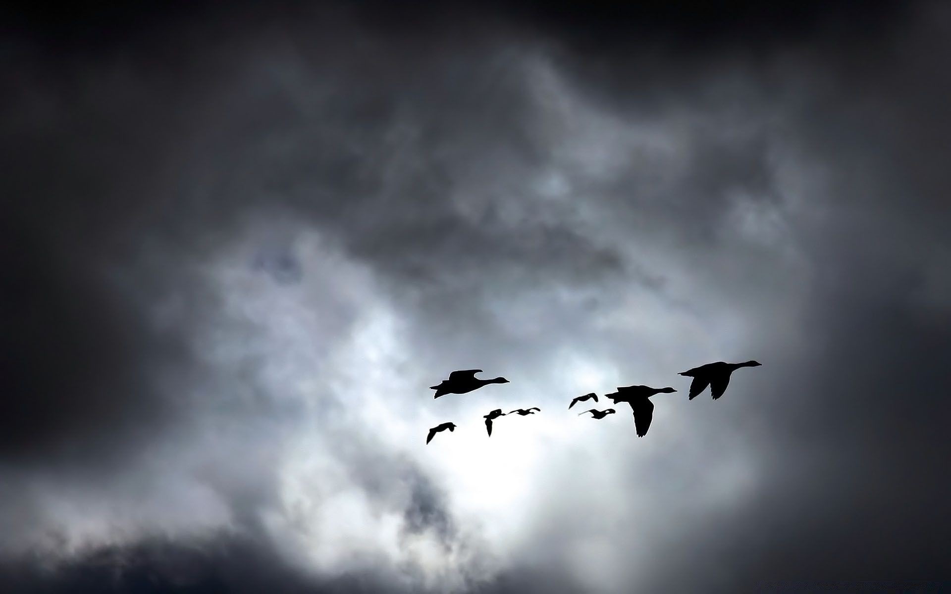 Um bando de pássaros voando para a direita