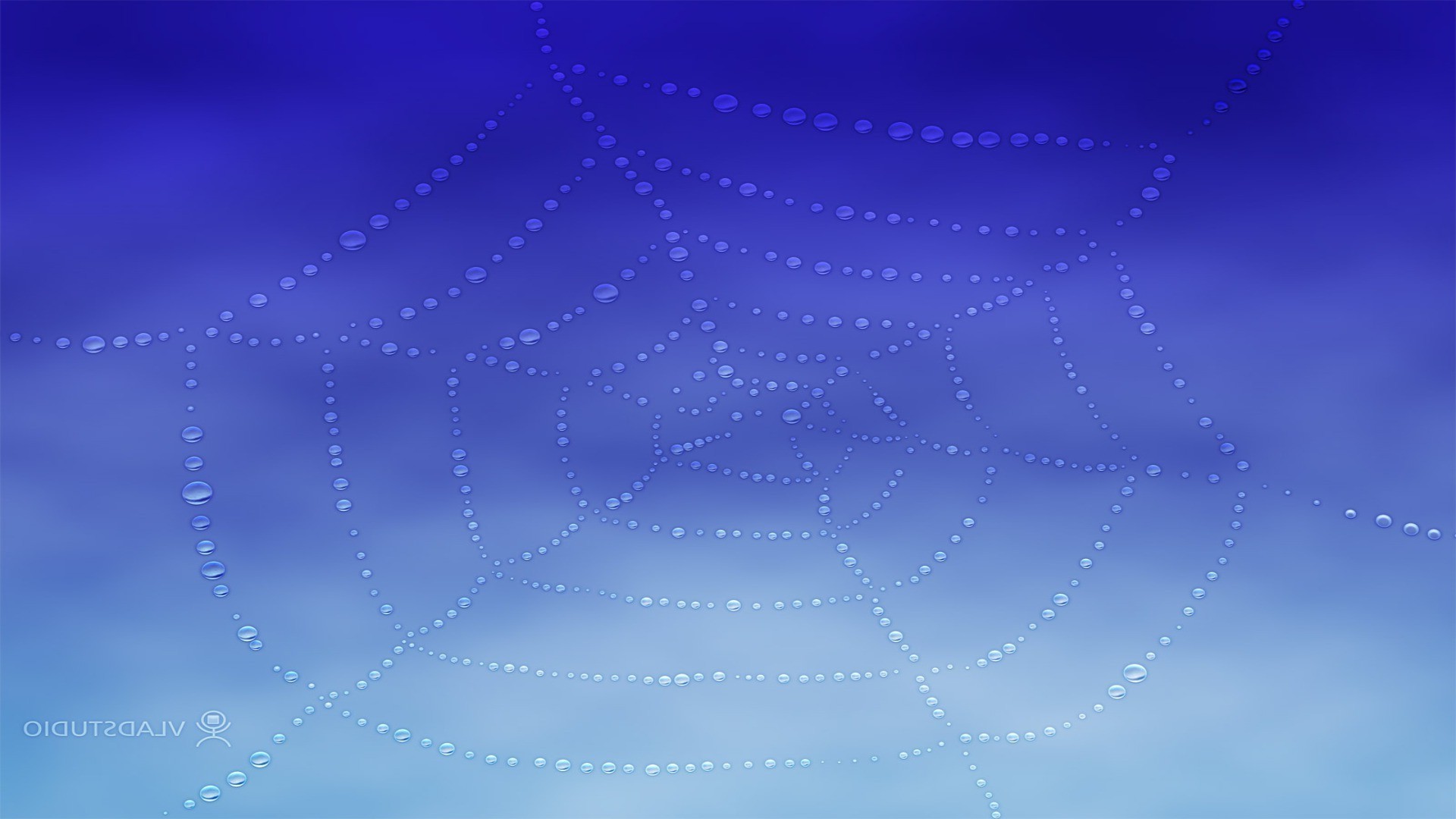 Teias de aranha no orvalho em um fundo azul macro