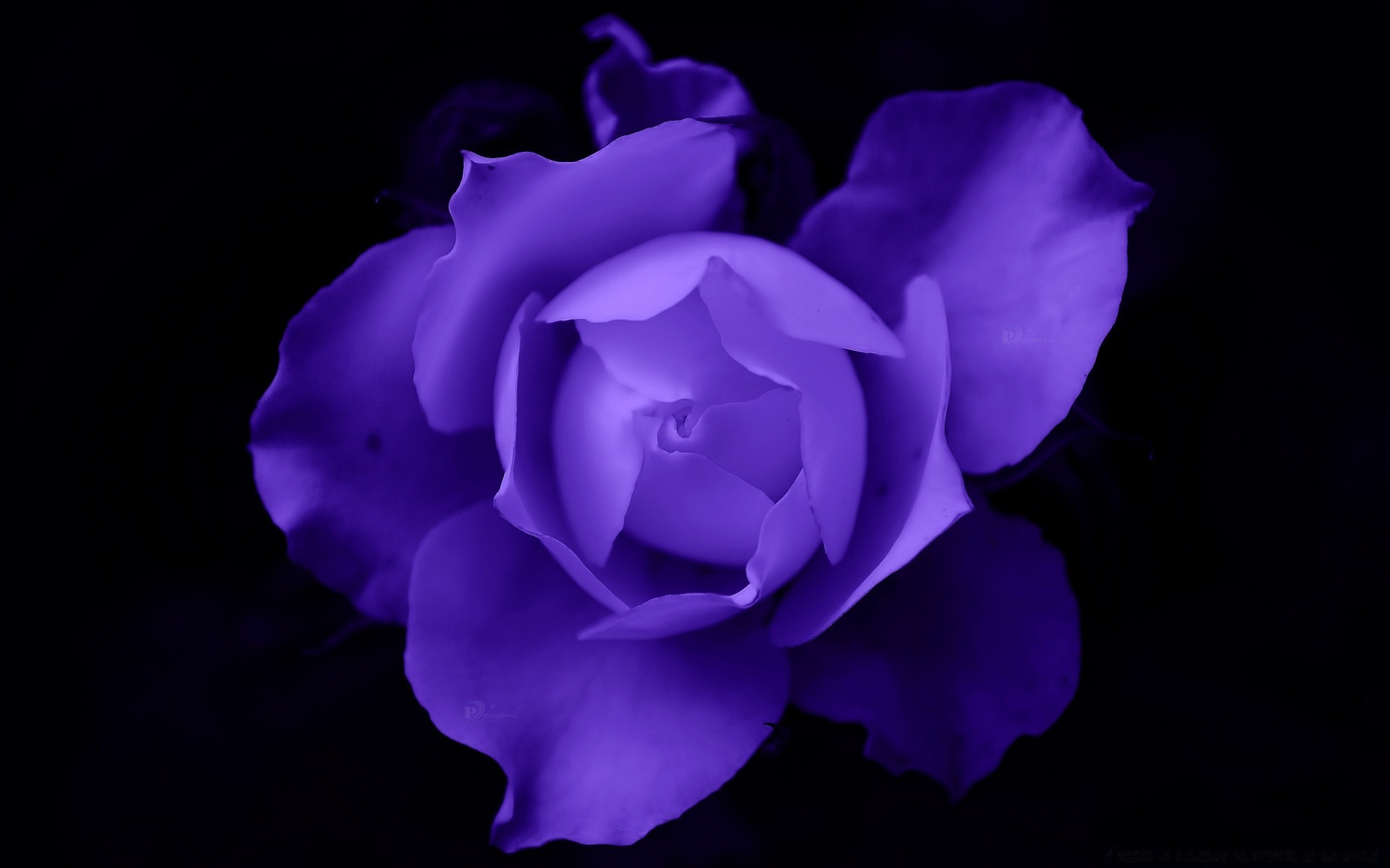 Flor roxa brilhante em fundo preto