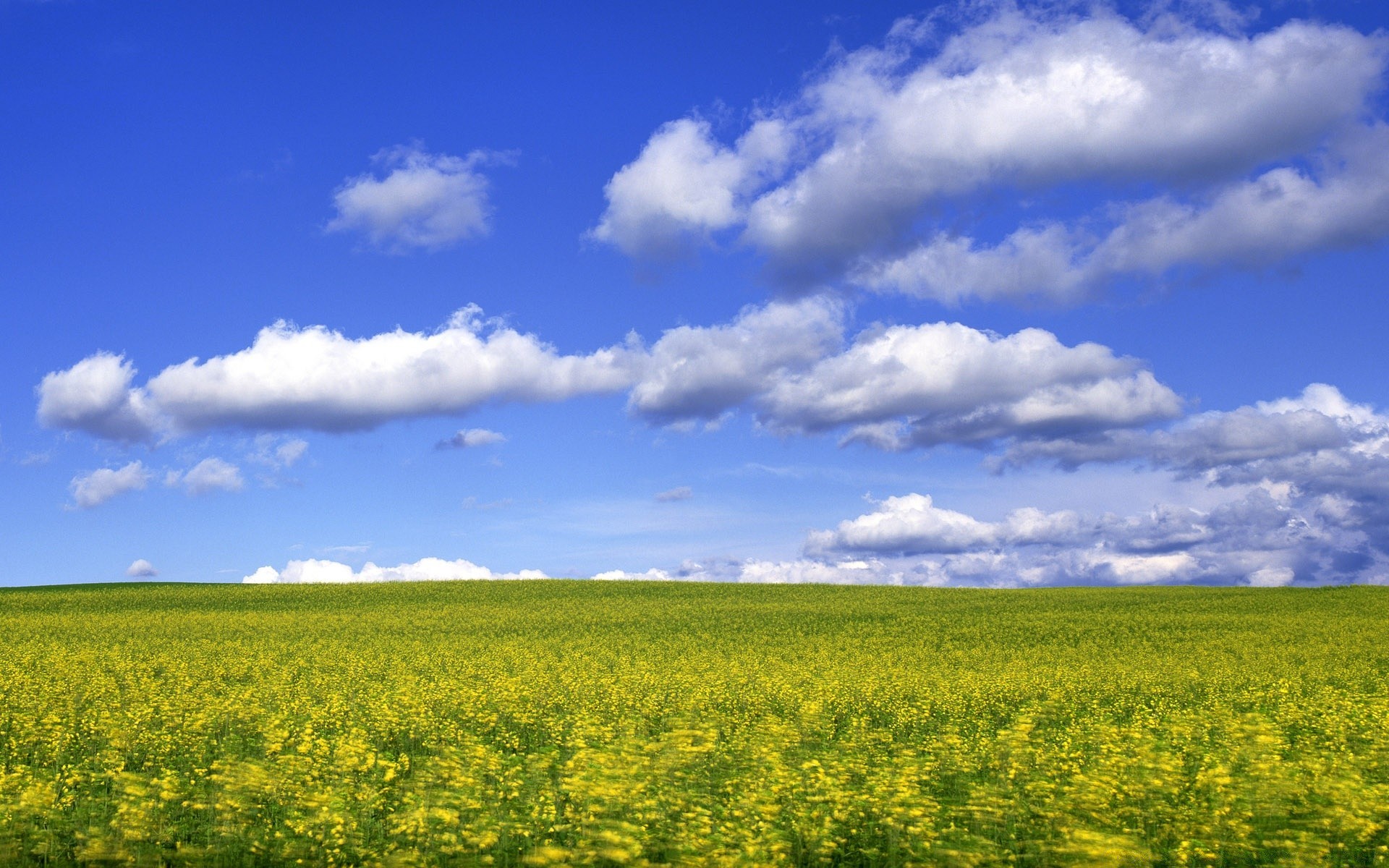 Girassóis florescendo no fundo do céu azul e das montanhas